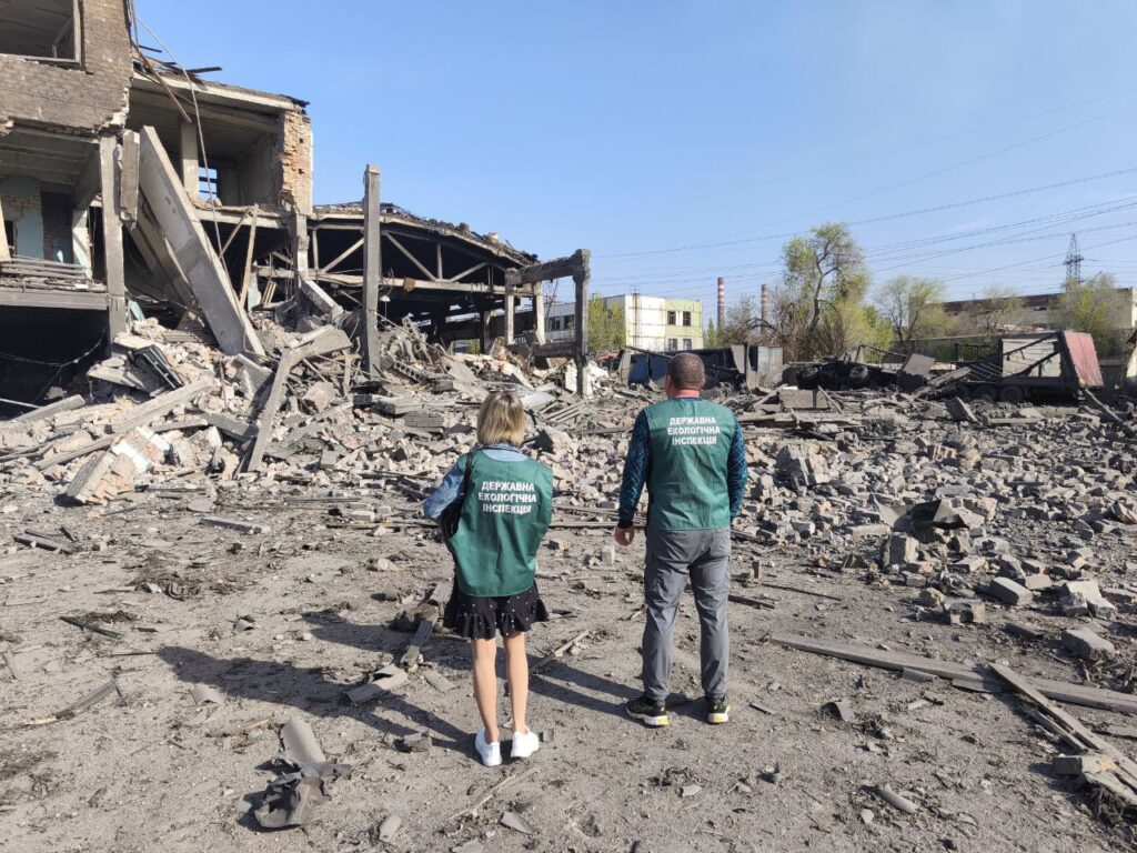 Специалисты Госэкоинспекции обследовали территорию в Вознесеновском районе Запорожья, которая подверглась разрушениям из-за вражеской атаки 19 апреля.