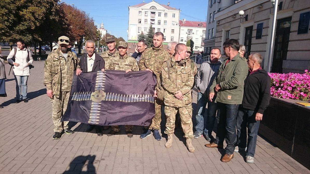 По словам заместителя руководителя союза ветеранов АТО Валерия Марченко, сегодняшняя акция мирная и вызвана обидой, которую вынуждены терпеть бойцы.