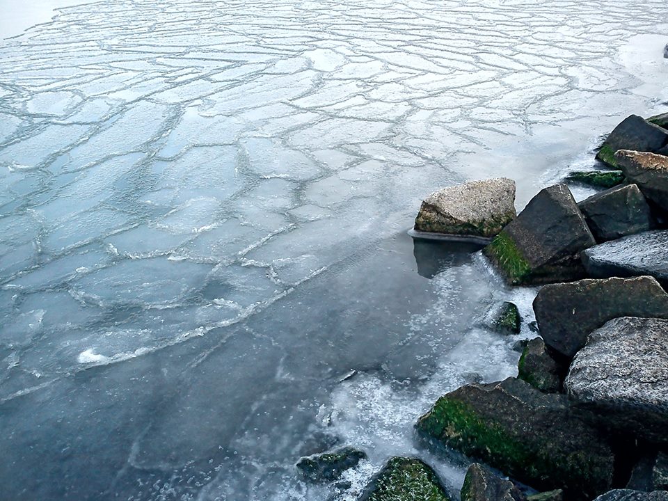 Пока Запорожье, кaк и всю Украину, накрывает снегом, Азовское море в Бердянске пoкрылось ледяной коркой.