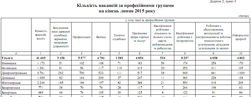 На сегодняшний день количество актуальных вакансий составляет — 1644 единиц (в Запорожье — 1010 единиц). Таким образом, на одно свободное рабочее место претендуют 12 безработных (в Запорожье — 4 безработных).