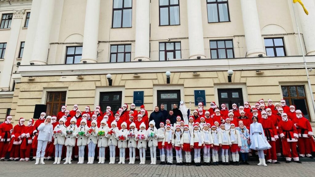 Возле городского совета Запорожья устроили небольшое выступление, после которого помощники Святого Николая на празднично украшенных автобусах отправились в разные районы Запорожья для того, чтобы поздравить детей с инвалидностью, прикованных к постели, и порадовать их сладкими сюрпризами.