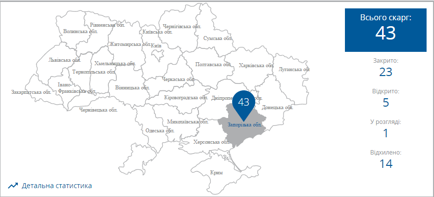За последний год в офис бизнесмен омбудсмена Альгидраса Шемете было направлено 43 жалобы от запорожских предпринимателей. Из них закрыто 23. Чаще всего предприниматели жалуются на Государственную Фиксальную службу, государственные фонды и Министерство Юстиций.