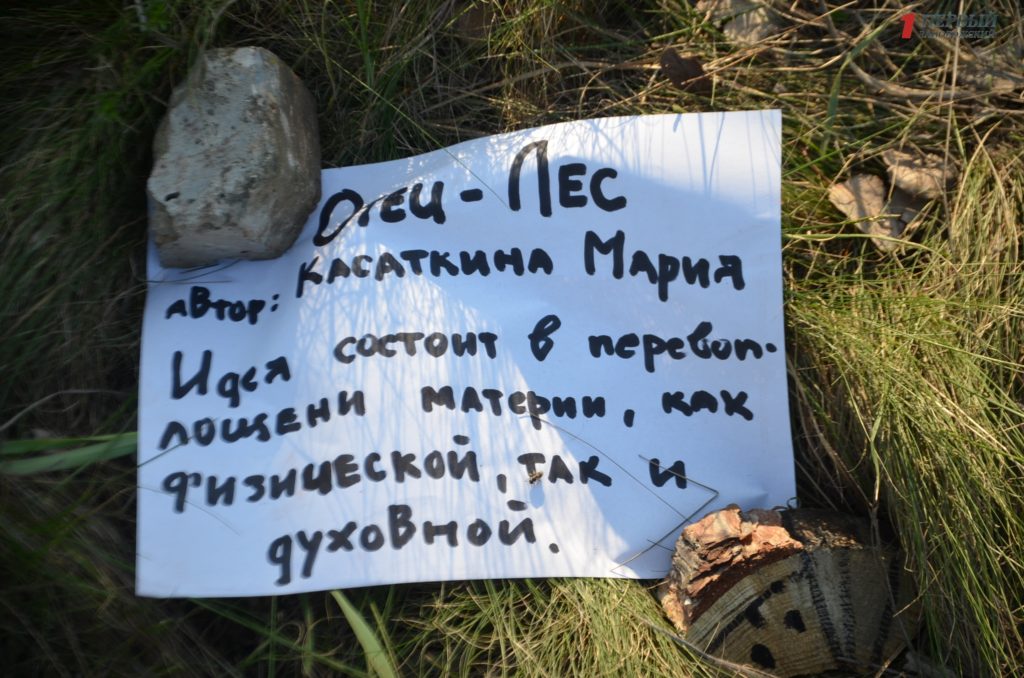 Поскольку фестиваль открыт, то все желающие могли принять участие и внести свой уникальный арт-объект. На творческой площадке авторы разместили немало необычных работ: «Отец лес» — лежащий на земле человек из проволоки, окутанной пищевой пленкой, «Зри в корень» — вязанная салфетка, подвешенная на дереве, лодка из камышей, руки из скотча, торчащие из дерева, высаженная в землю луковица, посыпанная просом, «Улыбка» — старый чемодан с семенами дикой акации, «Констуктор порталов» — композиция из зеркал, лавочка с видом на берег реки, пирамида для медитации и многое другое.