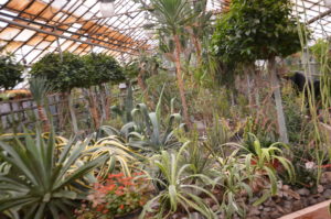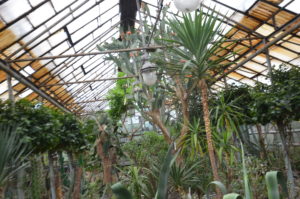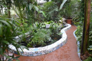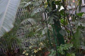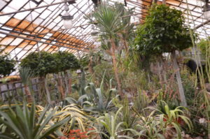 В самой большой теплице — «Зимний сад» можно увидеть огромное количество уникальных растений: бананы, бамбук, разные сорта пальм, папоротники и многое другое. Здесь же расположен небольшой искусственный пруд с декоративными рыбками.