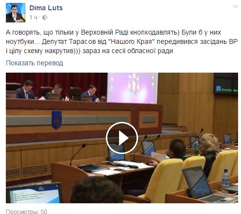 «А говорят, что только в Верховной Раде занимаются кнопкодавством! Если бы у них были ноутбуки… Депутат Тарасов от «Нашого Края» пересмотрел заседания от ВР и целую схему накрутил», — заключил Дмитрий Луц.