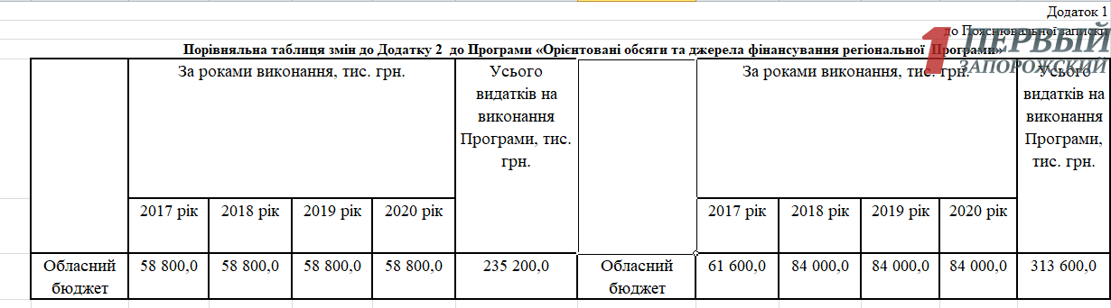 — Увеличение ресурсного обеспечения с 2018 года до 84 миллион гривен на каждый год позволит реализовать более масштабные проекты на территориях, улучшить материально-техническую базу бюджетных учреждений и заведений Запорожской области, — говорится в проекте решения.