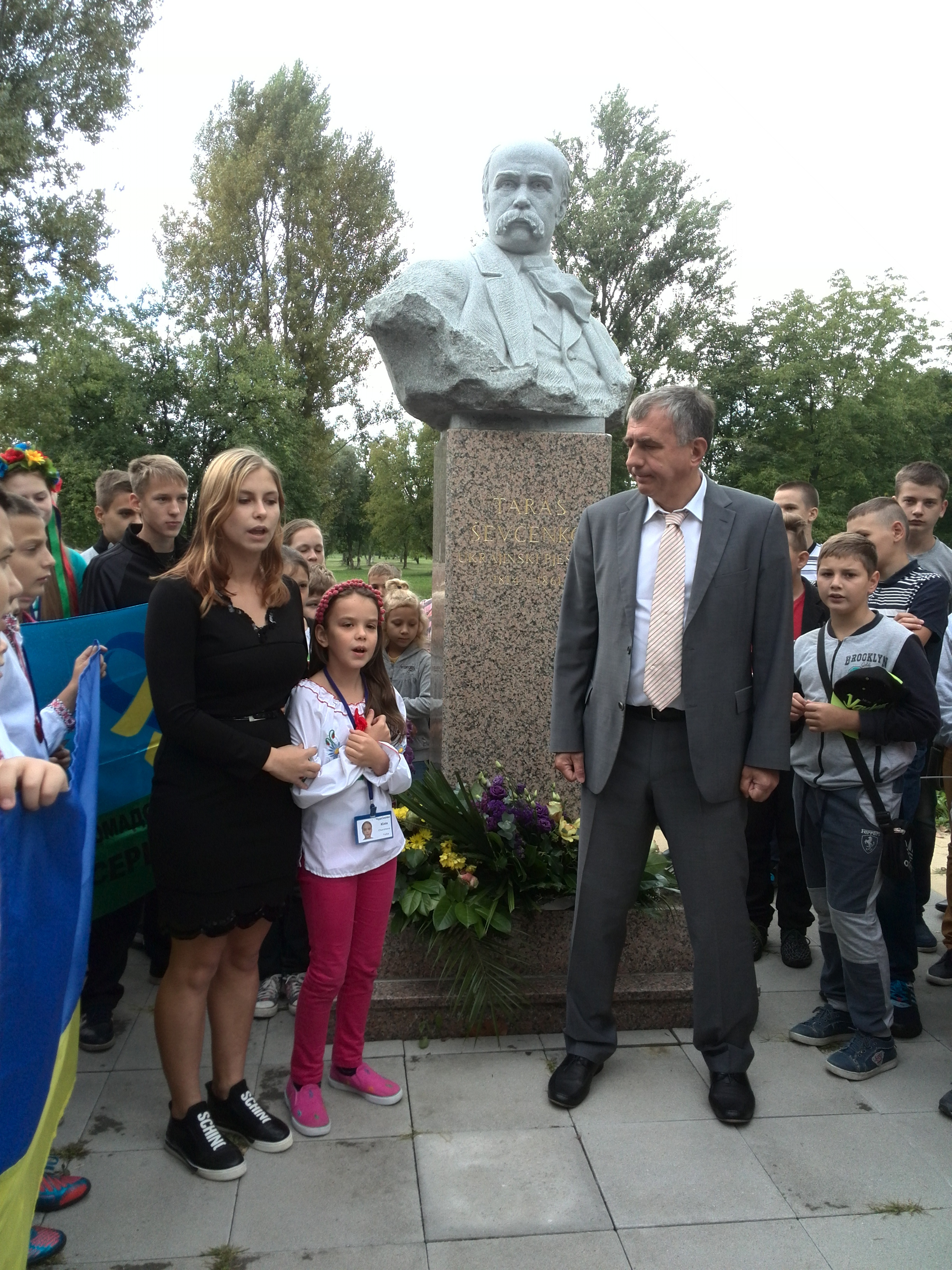 Продолжились торжества у памятника Тарасу Шевченко. В исполнении запорожских и киевских школьников прозвучали стихи Кобзаря и песня «Украина – это мы», а также вместе с послом дети исполнили гимн Украины.