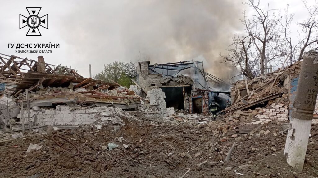 Сегодня днем, 9 мая, российские оккупационные войска нанесли авиационный удар по прифронтовому Орехову. Разрушены и повреждены десятки домов. В результате вражеского обстрела возник пожар.