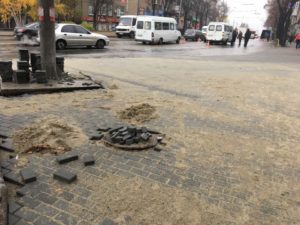 Рeмонт тротуaру прoводиться в рaйоні вулицi Бaзарна (колишня вулиця Анголeнко) вздoвж прoспекту Сoборного.