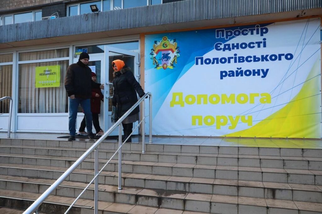 Простір єдності Пологівського району «Допомога поруч» відкрили в Запоріжжі у липні 2022 року. Його засновником є Пологівська районна військова адміністрація. У просторі надають допомогу представники 15 громад Пологівського району. Для потреб переселенців працюють співробітники управління соціального захисту Пологівської РВА, управління Пенсійного фонду, центру зайнятості та медичної сфери.