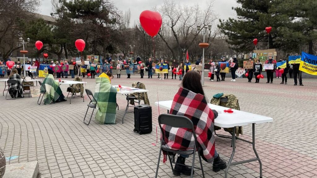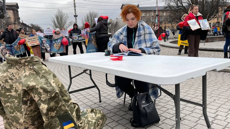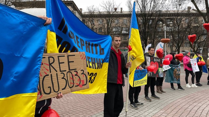 16 марта в центре Запорожья, на площади Маяковского, провели акцию-перформанс, призванную привлечь внимание общественности к украинским военнопленным.