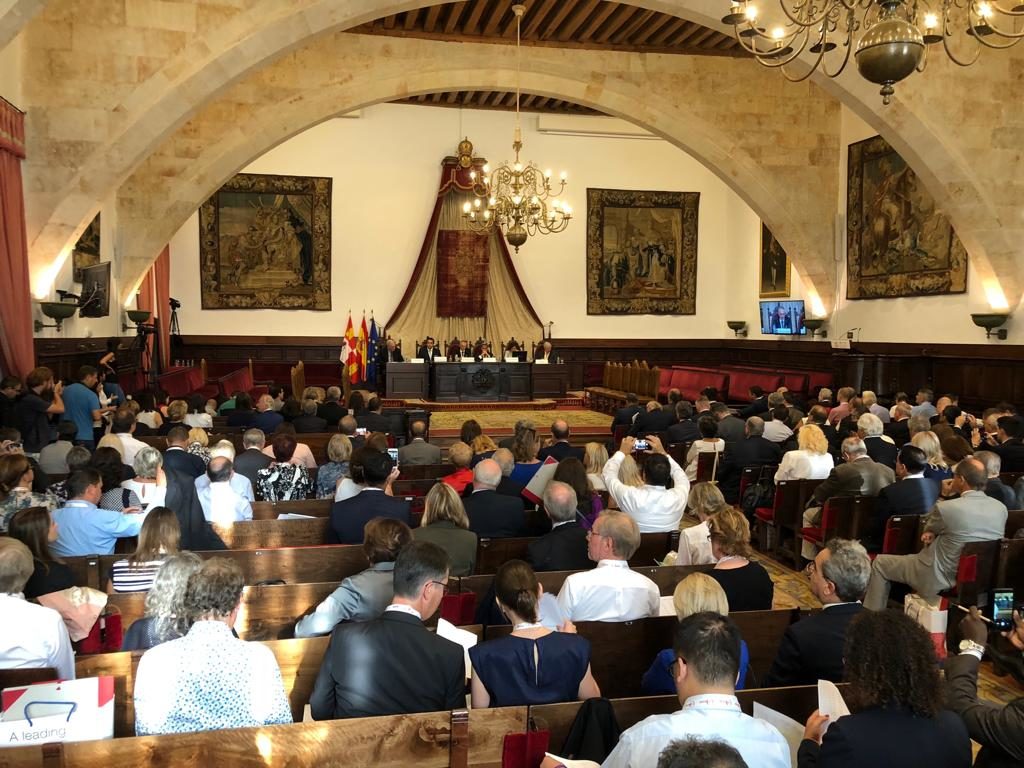 Церемония состоялась в чрезвычайно обстановке с участием короля и королевы Испании, что подчеркнуло важность и знаковость события. После церемонии участники-подписанты, одетые в университетские мантии и бонеты, прошли торжественным шествием по улицам Саламанки