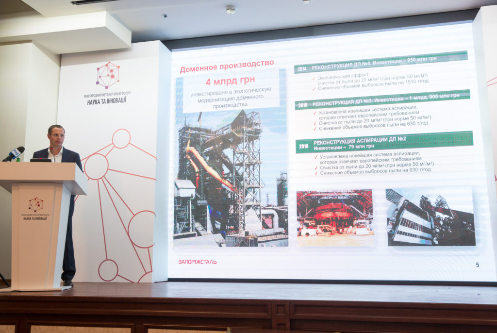 Особое внимание форум уделил вопросам экологии и экологической модернизации производственных мощностей. Генеральный директор комбината «Запорожсталь» Ростислав Шурма презентовал доклад «Экологическая эффективность – обязанность каждого современного бизнеса» о программе экологической модернизации комбината за последние 5 лет. С 2012 года на комбинате «Запорожсталь» полностью реконструированы газоочистные системы агломашин, выполнен капремонт доменных печей № 2, 4 и 5 и их аспирационных систем, реконструирована доменная печь № 3, запущена в работу новая экологическая линия соляно-кислотного травления в цехе холодной прокатки № 1.