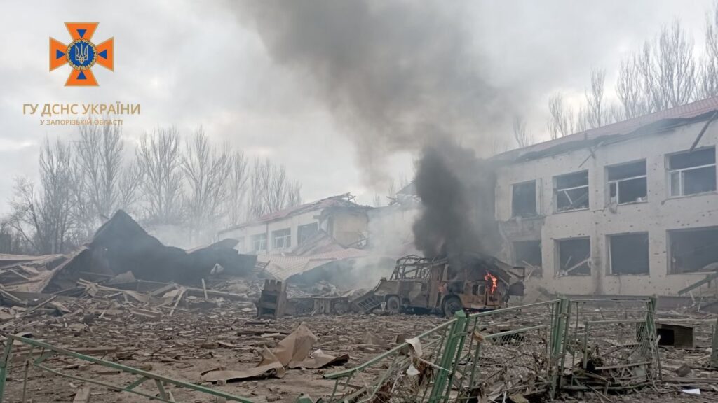 Российские оккупационные войска нанесли три авиационных удара по Пологовскому району 3 апреля. Пострадали два корпуса гимназии и разрушен тепловой переход между сооружениями с последующим возгоранием. Жертв и пострадавших нет.