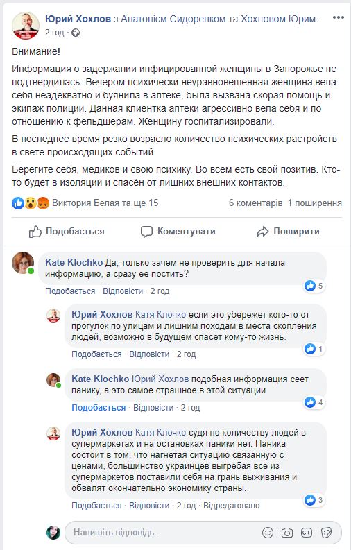Впоследствии выяснилось, что информация оказалась фейковой. Об этом на своей странице написал запорожский журналист.