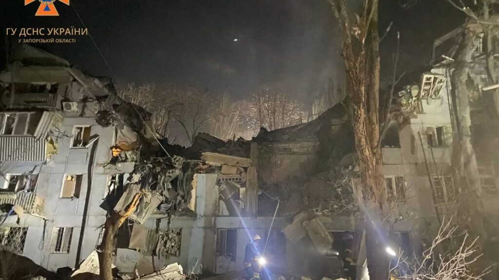 Сегодня ночью, 2 марта, враг нанес ракетный удар по Запорожью. В результате атаки произошло разрушение с 5 по 1 этаж многоэтажного жилого дома.