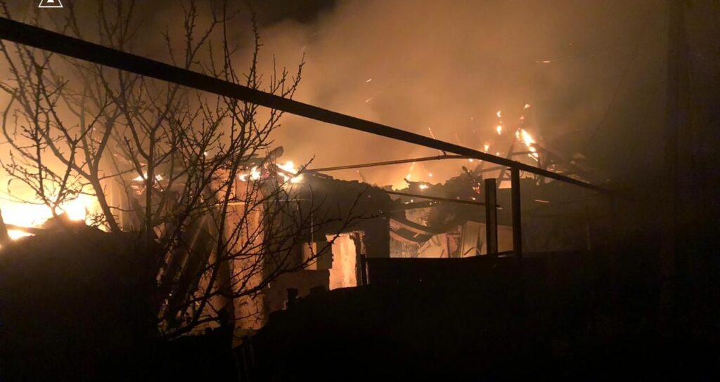 В селе Малокатериновка бойцы ГСЧС вместе с огнеборцами местной пожарной охраны ликвидировали возгорание по пяти адресам, которые подверглись вражеским ударам. Горели жилые дома на общей площади 365 квадратных метров.