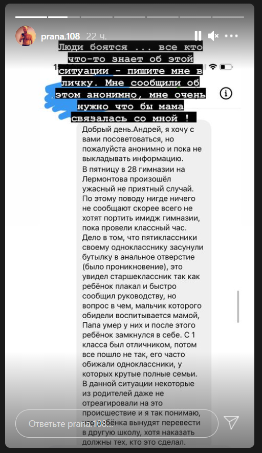 По его информации, на днях в одной из гимназий Вознесеновского района Запорожья пятиклассники засунули своему однокласснику в анальное отверстие бутылку.
