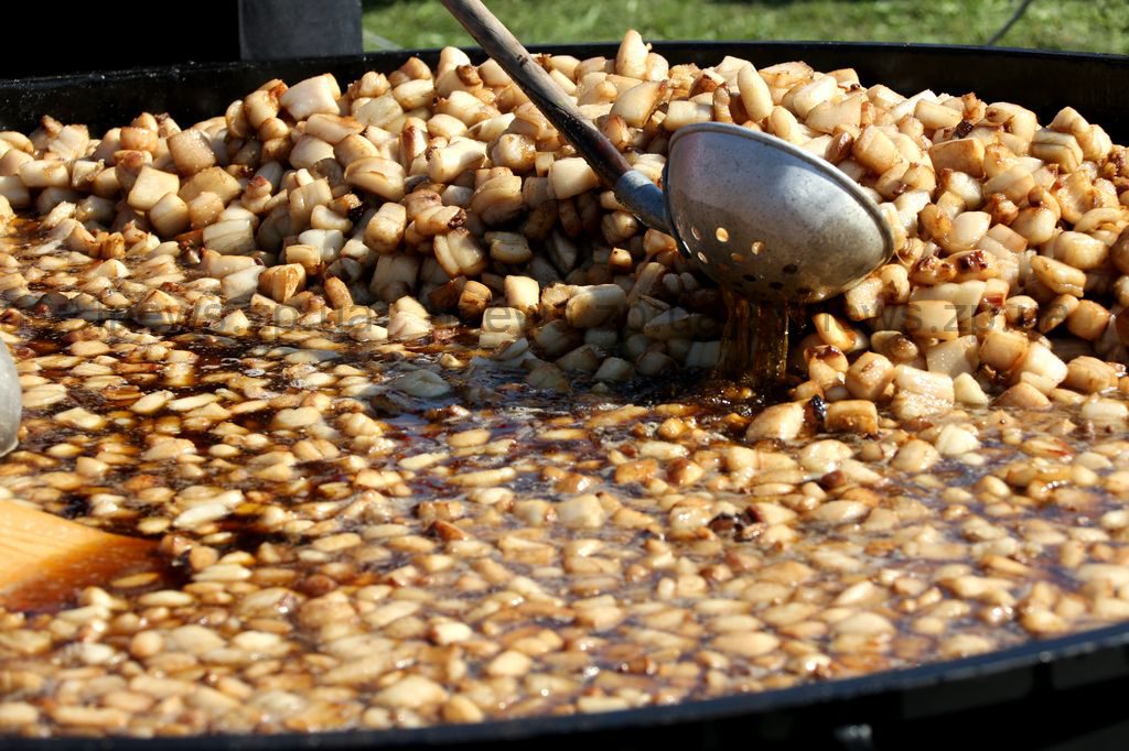 Изначально обжарили 250 кг сала, далее перемололи его на мясорубке и приготовили 16,5 тыс. бутербродов, 10 тыс. из которых бесплатно раздали собравшимся на ярмарке.