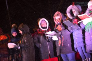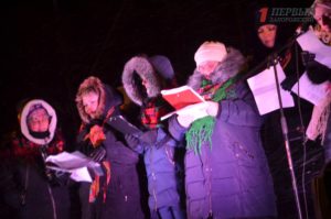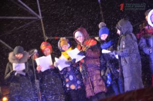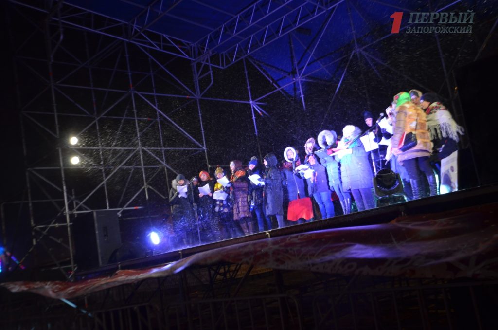 А с 18.00 на площади состоялся рождественский концерт, где запорожцы хором исполняли рождественские песнопения. Из-за неблагоприятной погоды слушателей было не так много, однако они весьма активно подпевали и подтанцовывали.
