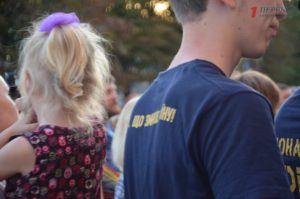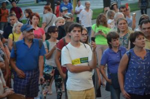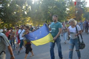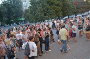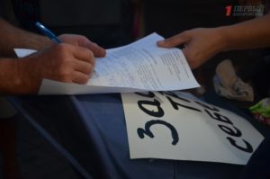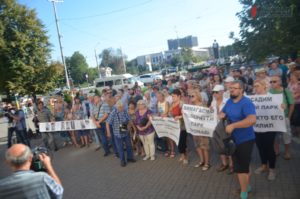 На площади около горсовета собрались несколько сотен запорожцев. Среди них общественные активисты, студенты, волонтеры, пенсионеры, депутаты, чиновники, предприниматели, мамы с детьми. Жители Запорожья считают, что застройщик в лице компании «Ленд Дивелопмент»(входит в бизнес-структуру депутата Владимира Кальцева), нарушил договоренности, когда не дождавшись решения суда принялся готовить площадку для постройки трехэтажного ТРЦ.