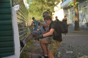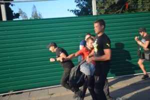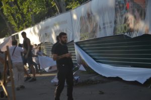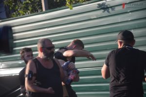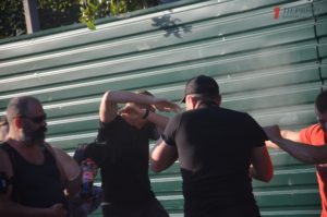 Сотни участников двинулись от бульвара Шевченка к «Украине». Там активистов встретили защитники парка из числа так называемых «титушек». Когда парни увидели, что жители намерены снести забор, они принялись избивать их руками и ногами, а также брызгать на протестантов слезоточивым газом. В результате завязалась драка, и участники митинга разделились на два лагеря: одни дрались с «титушками», а другие пытались повалить металлическое ограждение. Примечательно, что в этот момент на месте происшествия не было полиции, те появились только после бегства «титушек».