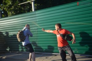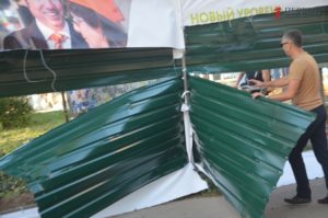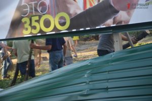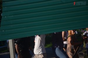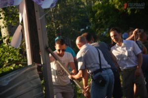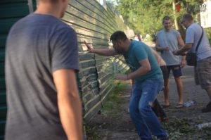 После проведения мирного митинга, участникам протеста предложили повалить ограждение, которое поставил Кальцев, чтобы оградить стройплощадку.