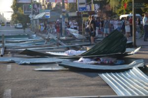 Когда митингующие повалили забор около проспекта, окрыленные успехом они побежали ломать сооружение-павильон, которые менеджеры «Ленд Дивелопмент» упорно именовали клумбой. После того, как все заборы и ограждения были повалены, один из организаторов Игорь Лукашенко предложил вернуться в мэрию и пригрозить городским чиновникам.