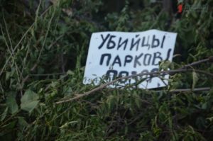 Под конец митинга было принято решение передать завтра в руки к мэру обращения жителей города с требованием разорвать договор с Кальцевым из-за того, что он изначально был заключен с нарушением законодательства, ввести мораторий на застройку зеленых зон, прекратить вырубку парка и вернуть землю в коммунальную собственность для восстановления деревьев.