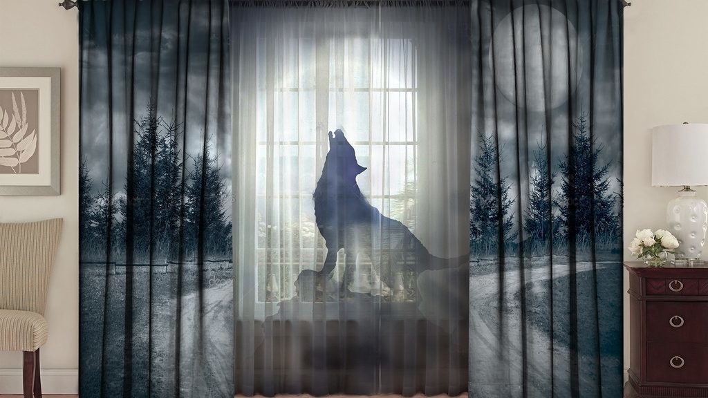 Визуально «поднять» низкие потолки смогут вертикальные рисунки, как, например, горы или высокие деревья. Хорошо справляется с этой задачей и изображение леса, парковой зоны. А ведущая вглубь тропинка как бы «раздвинет горизонты» малогабаритной комнаты. В спальне отлично смотрятся занавески с изображенным на них заходящим за горизонт солнцем, лесным или морским пейзажем, небом, покрытым облаками. Актуальными в гостиной будут ландшафты или животные, виды ночного города. Уместными в кухне станут фотошторы с изображением сладостей, ягод или фруктов, порхающих бабочек или цветов.