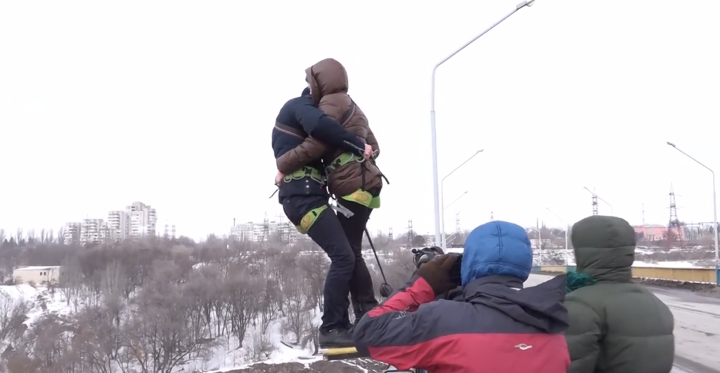 Для влюбленных были организованы парные прыжки с арочного моста, высота которого составляет 40 метров, сообщает «Радио Свобода».