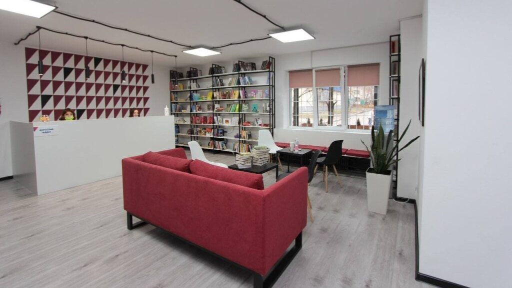 В заведении функционируют коворкинг-зона, библиохранилища, зона для малышей, игро-room.
