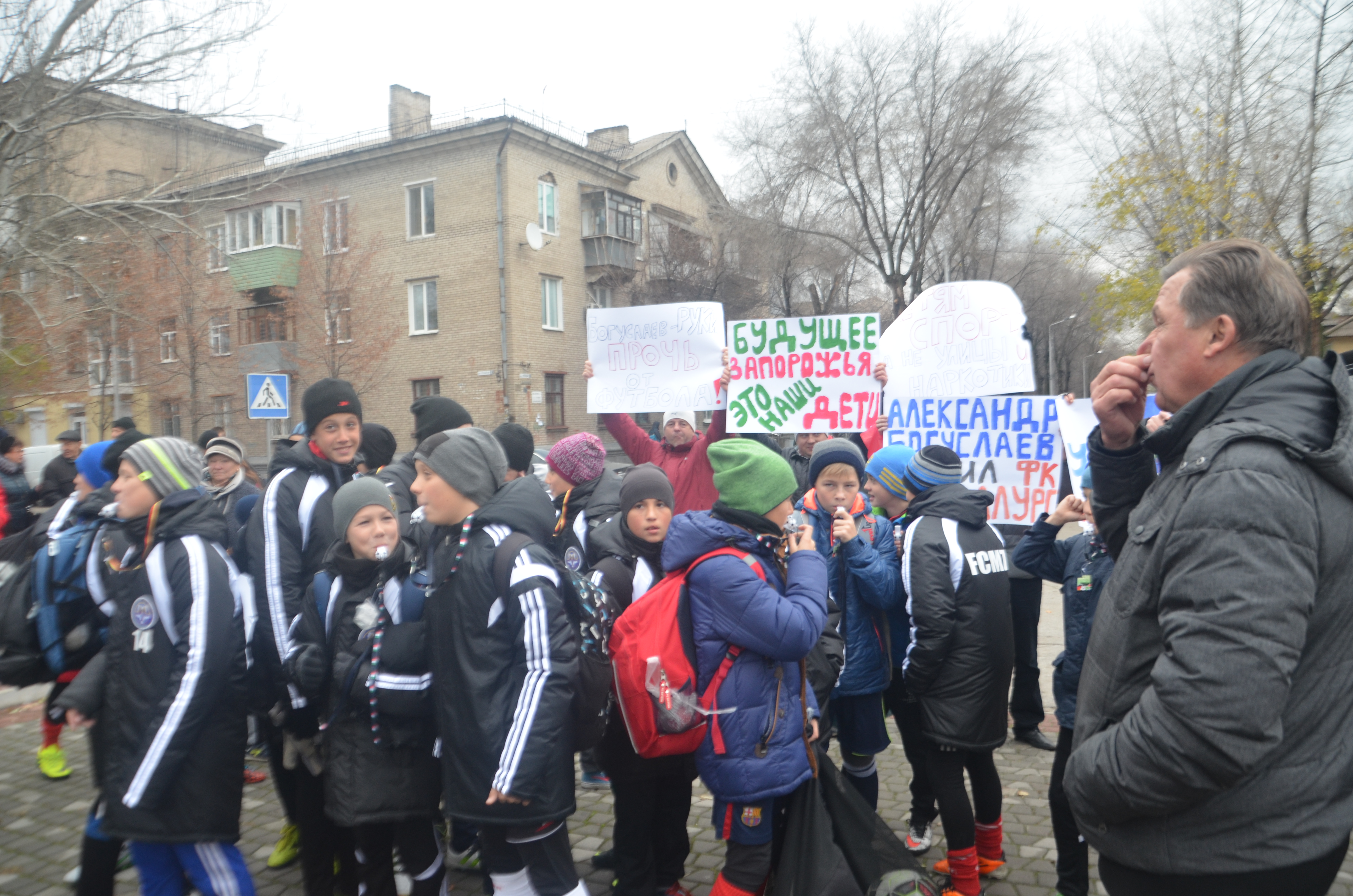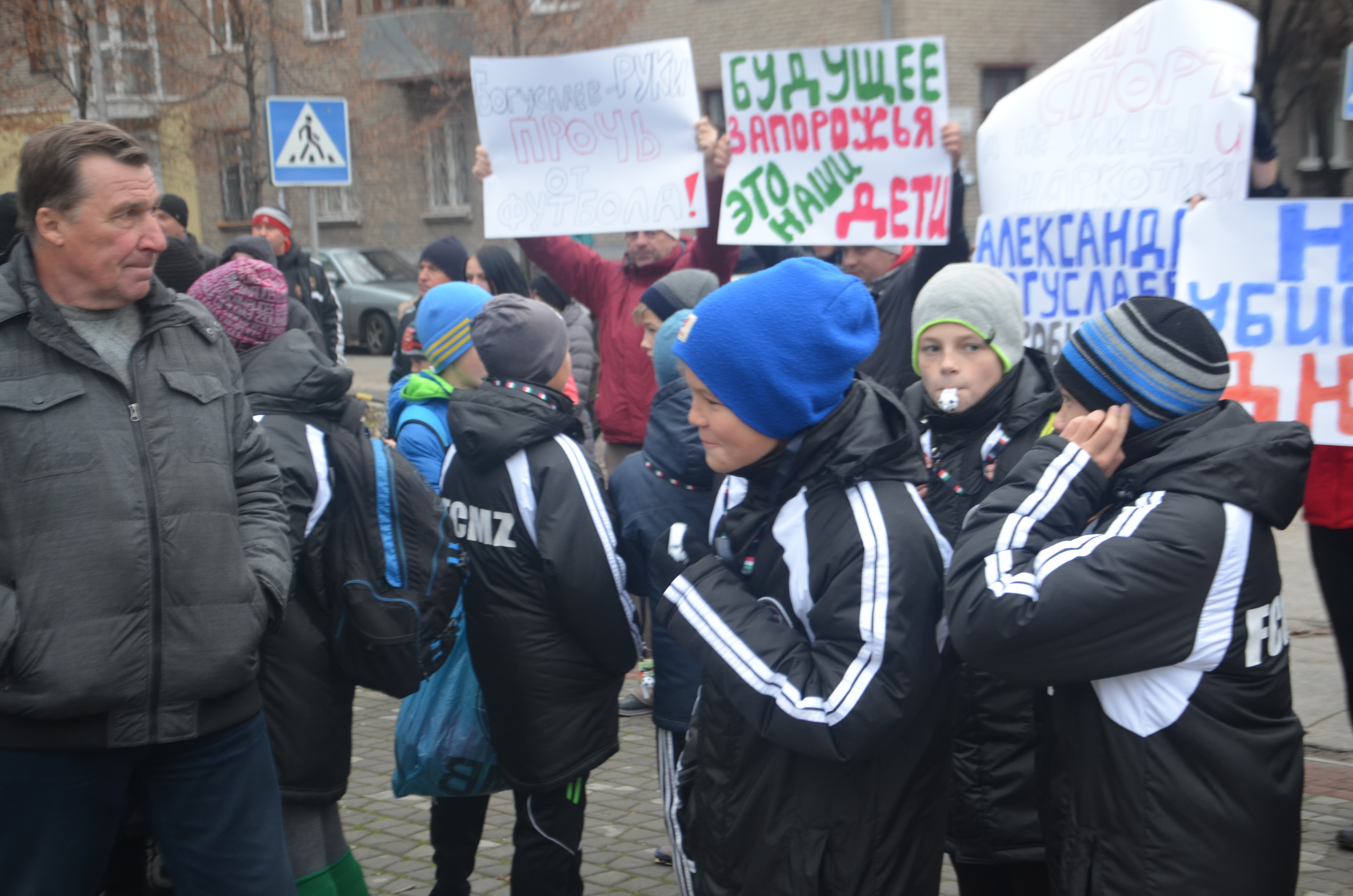 Сегодня полсотни родителей и неравнодушных запорожцев устроили акцию под названием «Дайте детям играть в футбол». Бабушки, дедушки, мамы и папы вышли на улицу с плакатами «Александр Богуслаев не убивай ДЮСШ» и «Будущее Запорожья – это наши дети». Организаторы акции и родительский комитет собирали подписи для открытого письма в Запорожскую областную федерацию футбола и одновременно с этим требовали от Александра Богуслаева не закрывать глаза на интересы детей. По неизвестным причинам человек, который позиционируют себя как один из самых известных меценатов отказывается идти на встречу 500 детям и просто дать им играть на футбольном поле.