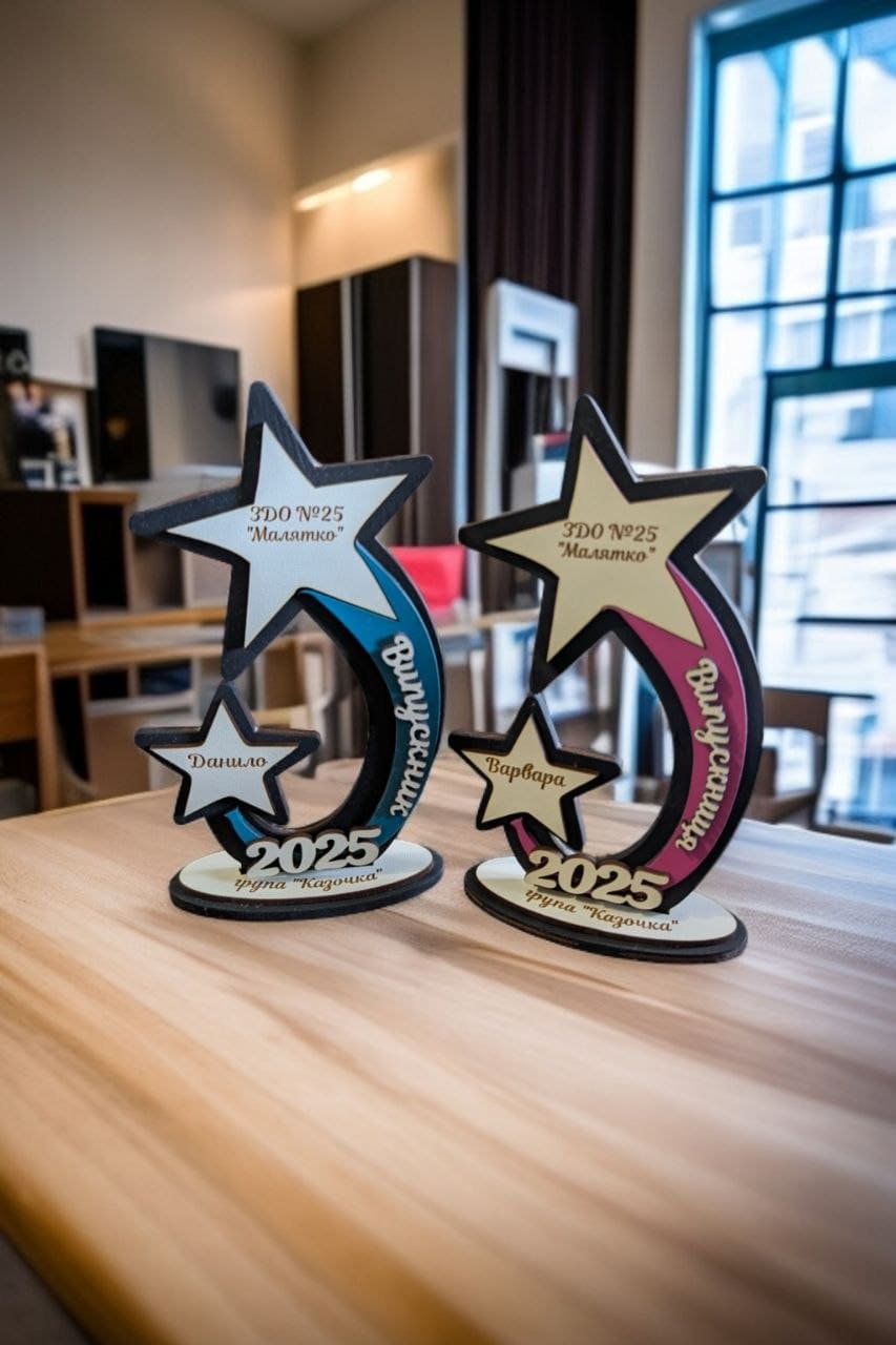 Наибольшим спросом пользуются сезонные заказы, связанные с детскими событиями и праздниками. К началу учебного года активно заказывают тематические медальки для школьников — «первоклассник» и «выпускник», а также именные фоторамки для сохранения воспоминаний с первого звонка. Для учеников средних классов популярными остаются практичные изделия: копилки, подставки для телефонов и органайзеры, которые помогают обустроить рабочее пространство. На различные события изготавливают наградную атрибутику: медали, кубки, грамоты.