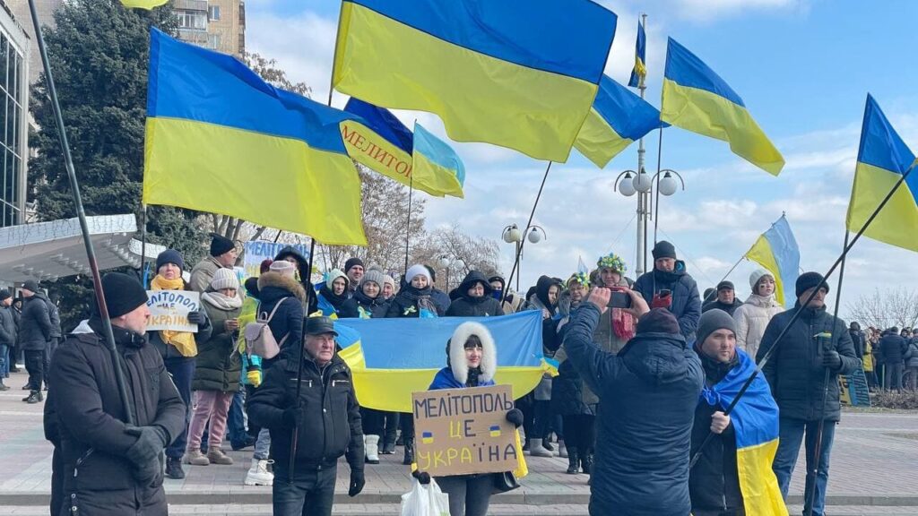 Так, жителі Мелітополя, який наразі оточений російськими військами, наполегливо виходять на мирні мітинги проти окупації. Військові окупанти зайняли місцеву будівлю Служби безпеки України, а місцеві мешканці на знак протесту закидали його паперовими літачками.