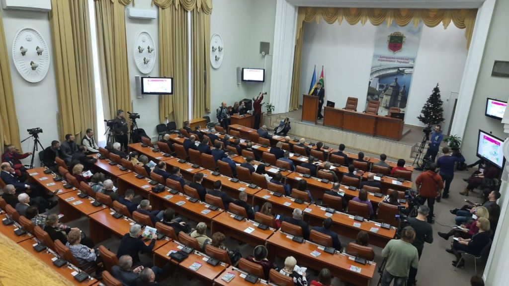 В сессионном зале собрались депутаты городского совета, представители исполкома, руководители районных администраций и коммунальных предприятий, руководство областного совета и областной администрации, представители общественных организаций, промышленных предприятий города. В зале видно одного народного депутата – Геннадия Касая («Слуга народа»).