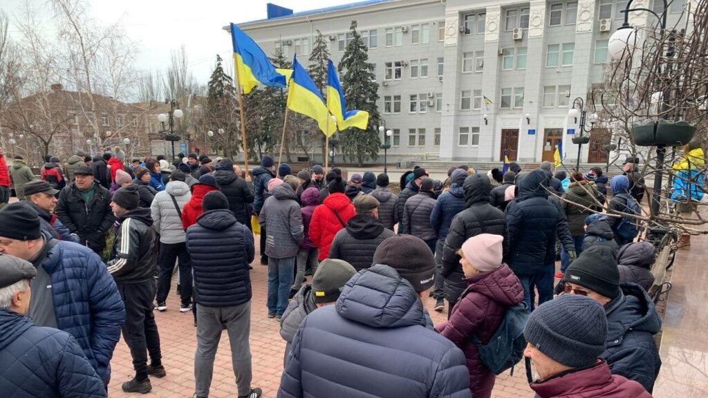 Сегодня, 20 марта, в Бердянске около 200-250 человек вышли на мирную акцию протеста против российской оккупации. Люди собрались на набережной города. Во время акции они держали флаги Украины, пели песни. Впоследствии отправились по центральной улице в исполком, где сидят оккупанты.