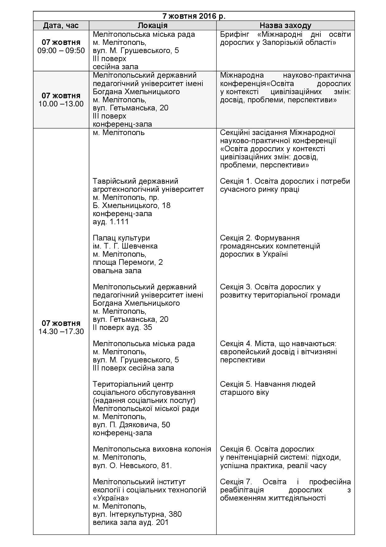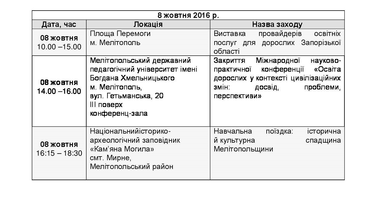 Международные дни образования взрослых в Запорожской области - программа