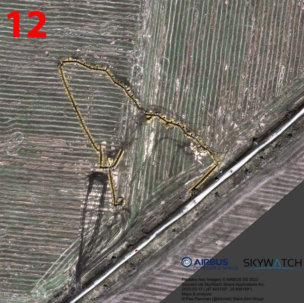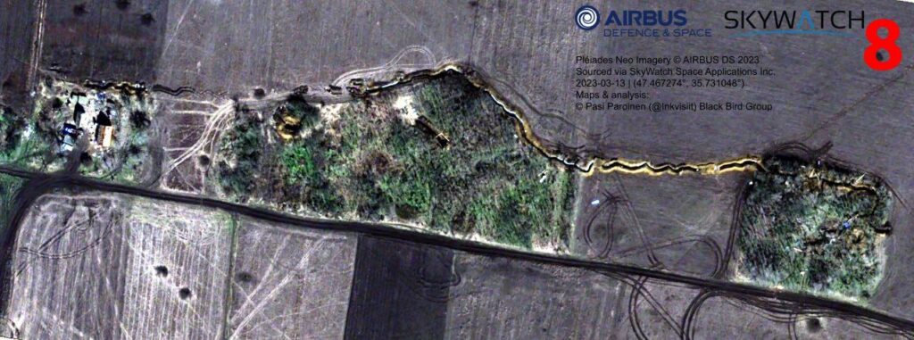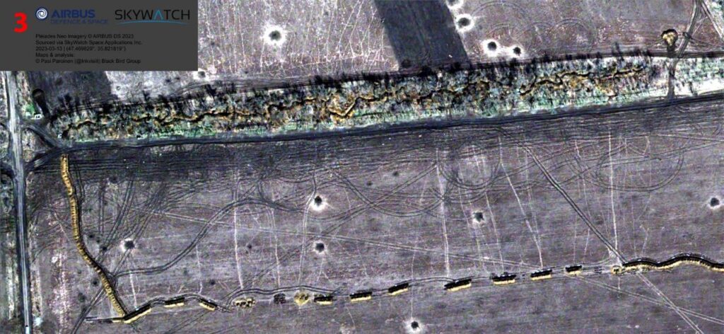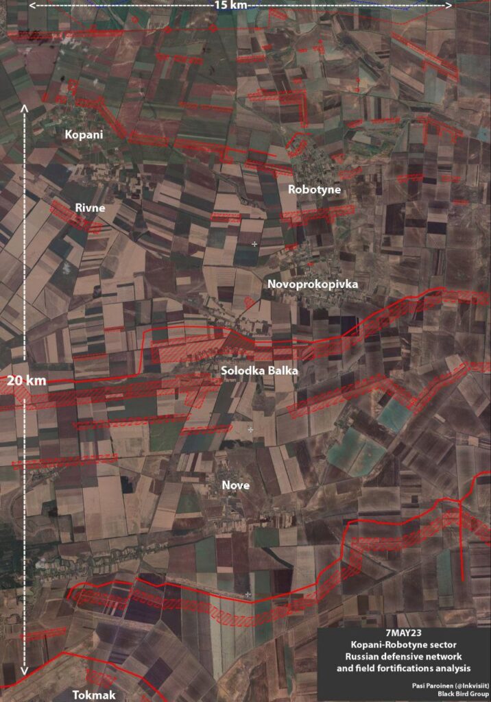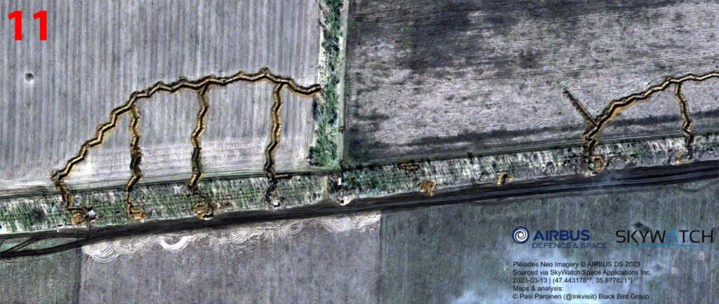 Основываясь на спутниковых снимках Sentinel и Airbus офицер запаса Сухопутных войск Финляндии Паси Паройнен опубликовал анализ российской оборонной сети и полевых укреплений одного из участков Запорожского фронта.