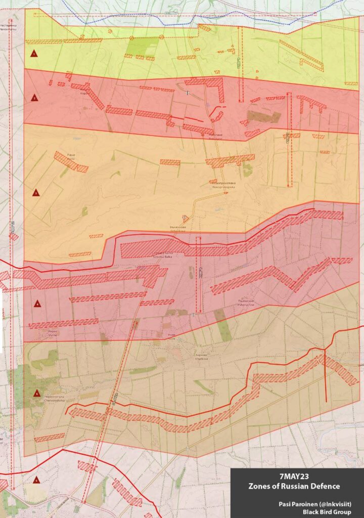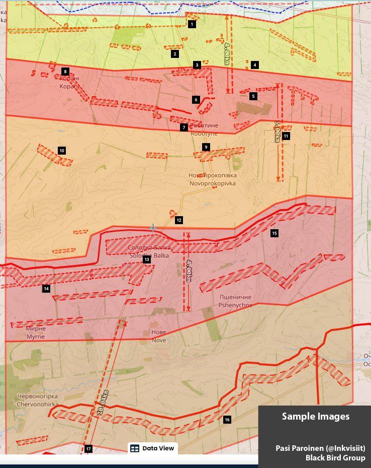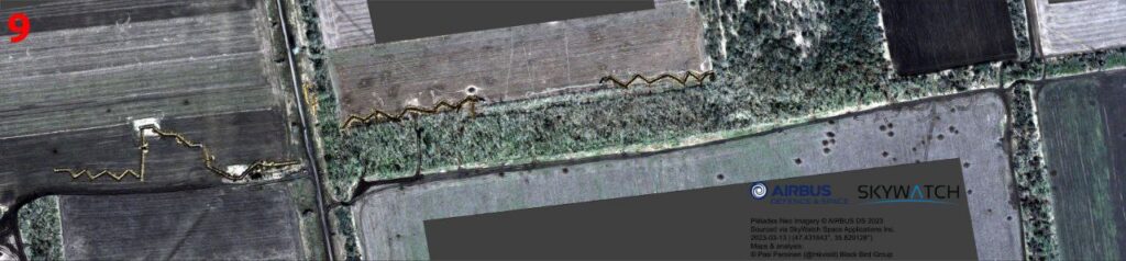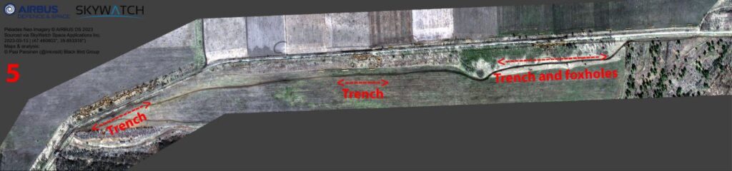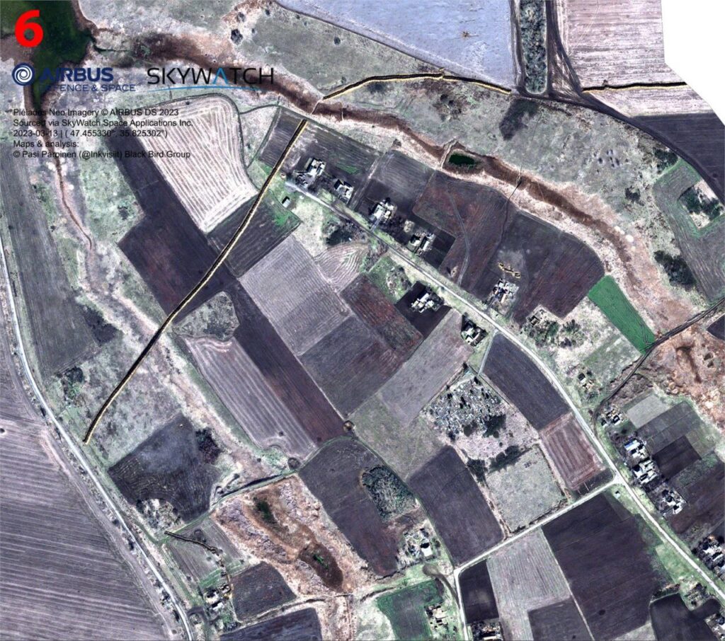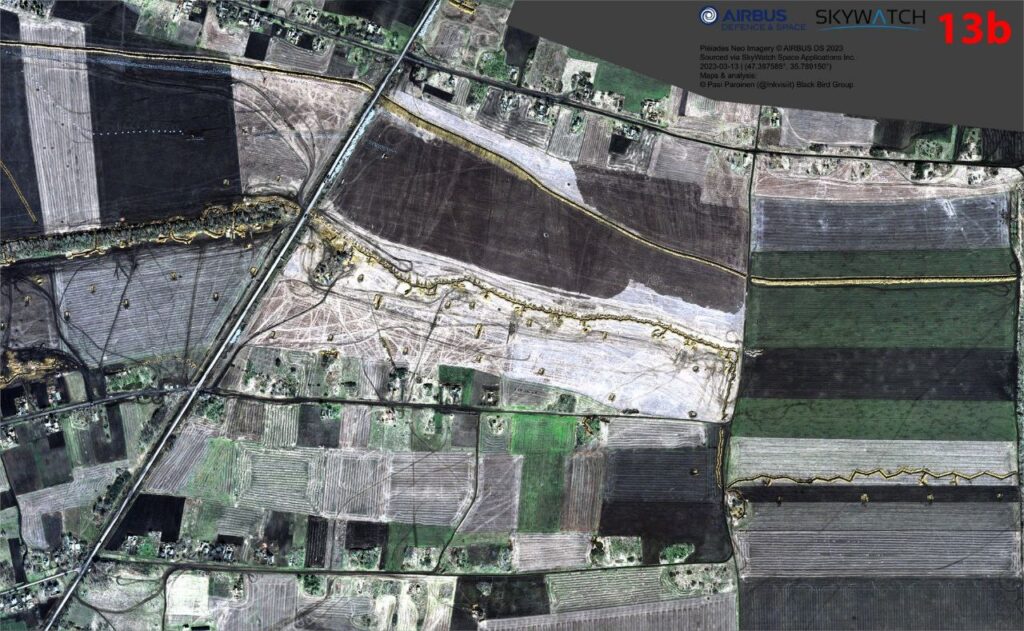 Основываясь на спутниковых снимках Sentinel и Airbus офицер запаса Сухопутных войск Финляндии Паси Паройнен опубликовал анализ российской оборонной сети и полевых укреплений одного из участков Запорожского фронта.