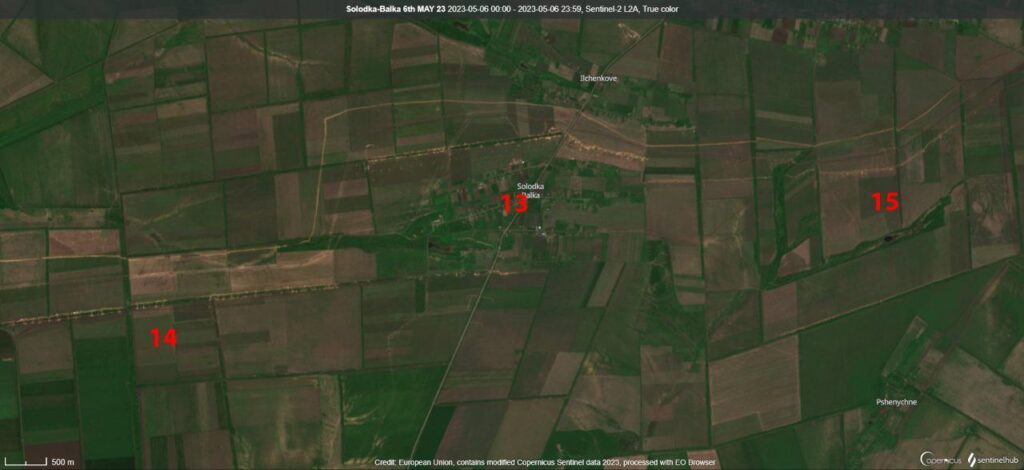 За этой оборонной линией россиян находится зона глубиной 4-5 км с резервными позициями и возможными ложными целями. На этом участке находится масса артиллерии РФ и механизированных резервов, которые будут маневрировать по первой линии обороны. Отмечены многочисленные укрытия транспортных средств и техники.