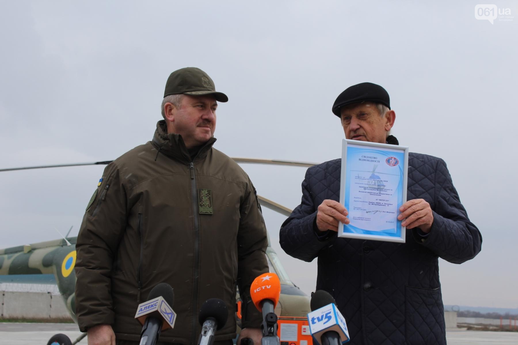 Передать новую технику приехал президент «Мотор Сичи», нардеп Вячеслав Богуслаев, получал – лично командующий Нацгвардии Украины генерал-полковник Юрий Аллеров.