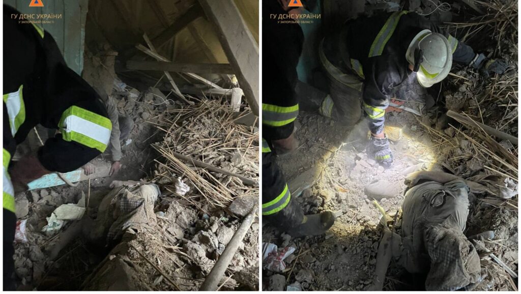 Житель Гуляйполя под завалами. Фото: ГУ ГСЧС Украины в Запорожской области