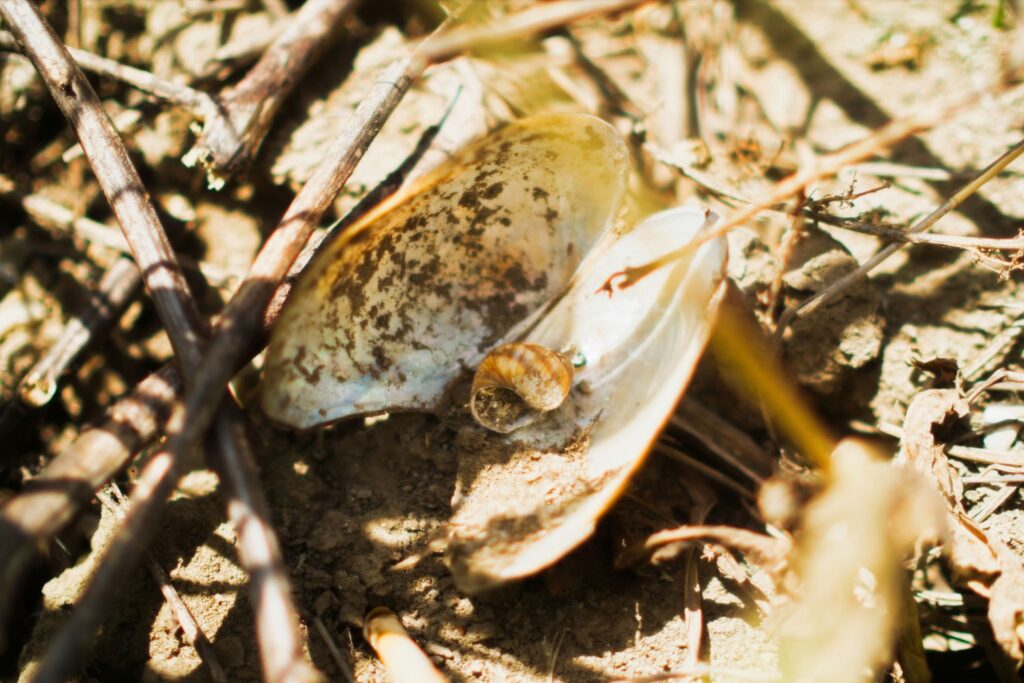 Берега покрыты остатками пресноводных обитателей – ракушками и шелухой. Далее простирается новый массив молодых деревьев, тянущийся до горизонта в направлении временно оккупированной Запорожской АЭС. В прошлом водохранилище занимало более 2 155 квадратных километров – это больше, чем площадь Нью-Йорка с его пятью районами.