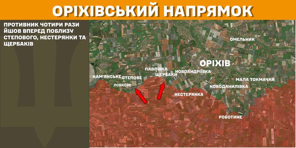 На Ореховском направлении противник четыре раза шел вперед вблизи Степового, Нестерянки и Щербаков.
