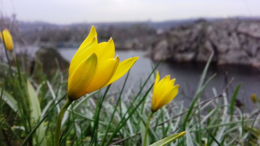 Валерий Кеменов взял к себе в кадр растения, внесенные в Красную книгу Украины — тюльпан гранитный (лат.Tulipa graniticola, ~ T. biebersteiniana). Автор фото отметил, что сделал снимки в разных местах Хортицы: в Наумовой балке, балке Каракайке и в Громушиной балке.