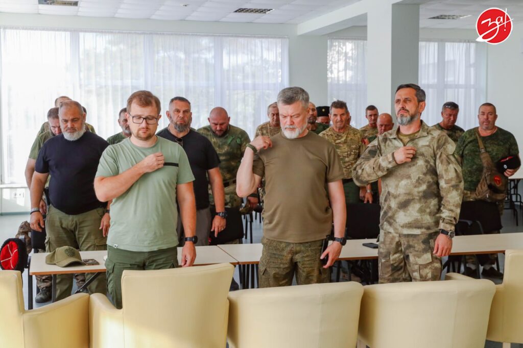 В захваченном Бердянске Запорожской области прошла встреча «атамана» так называемого Всероссийского казачьего общества Виталия Кузнецова с казаками-оккупантами, воюющими на Запорожском направлении, бердянскими «казаками» и представителями региональной оккупационной администрации.