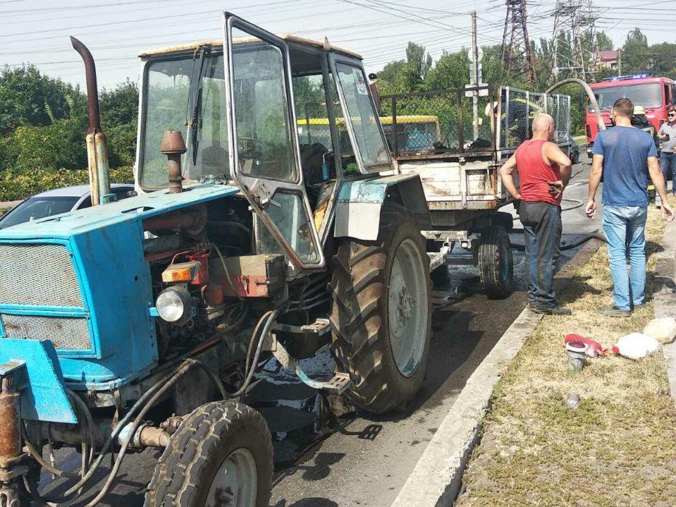В Вознесеновском районе Запорожья сегодня посреди дороги произошло возгорание тракторного прицепа.