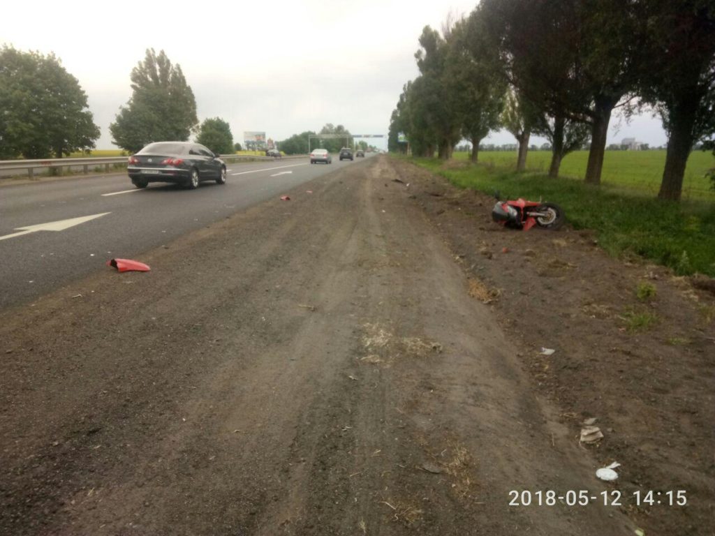 Как оказалось, на обновленной дороге Борисполь-Днепр-Запорожье произошло столкновение между автомобилем ВАЗ 21101 и мотоциклом.