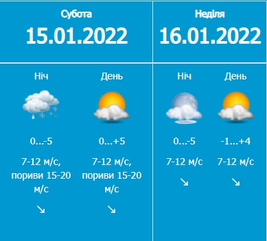 Переменная облачность. Ночью небольшие осадки. Днем без существенных осадков. Ветер юго-западный, 7-12 м/с, порывы 15-20 м/с. Температура воздуха ночью 0-5° мороза, днем 0-5° тепла.
